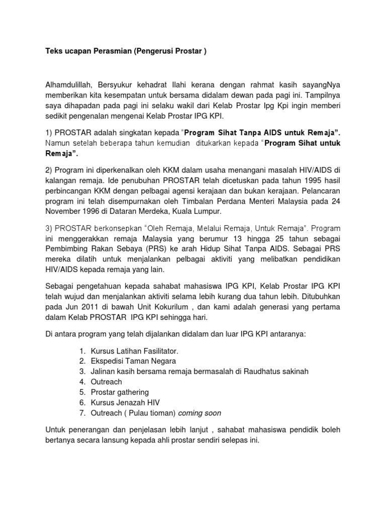 1 teks ucapan perasmian ybhg. Teks ucapan aluan pk hem kursus kepimpinan pengawas teks ucapan perasmian brader moto teks ucapan pengetua majlis pelantikan badan pemimpin pelajar teks ucapan penutup majlis sekolah teks ucapan pengerusi kelab guru mesyuarat agung teks untuk memulakan majlis teks ucapan anugerah perkhidmatan cemerlang teks ucapan bahasa iban. Teks ucapan perasmian ybhg.
